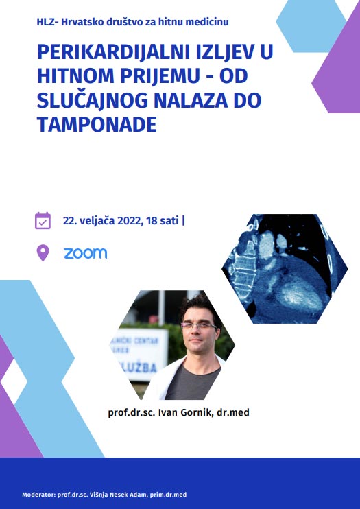 Predavač je predsjednik sekcije našeg društva – Hrvatska mreža za izvrsnost u kliničkoj hitnoj medicini, prof. dr. sc. Ivan Gornik, dr. med., a moderatorica je predsjednica društva prof. prim. dr. sc. Višnja Nesek Adam, dr. med.